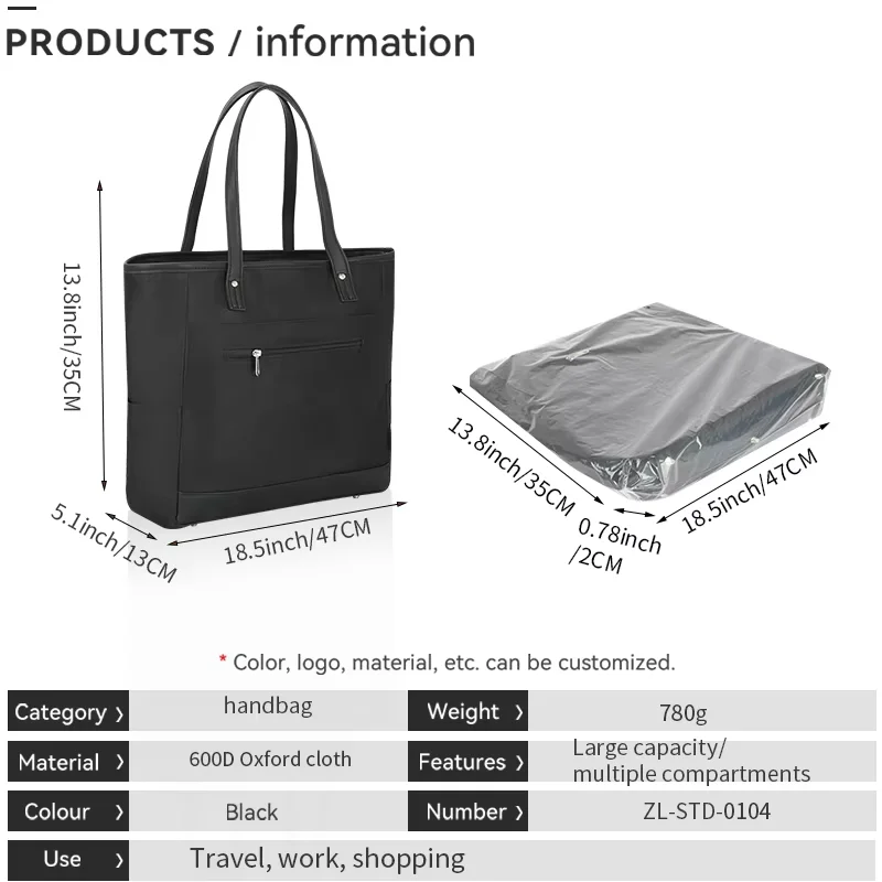 Customized Large Capacity High Quality Black Classic Fashion Shopping Bag Travel Shoulder Tote Bag Women’s Handbags for Work